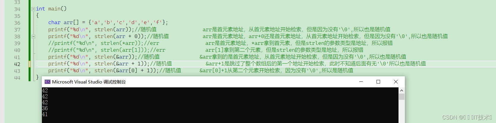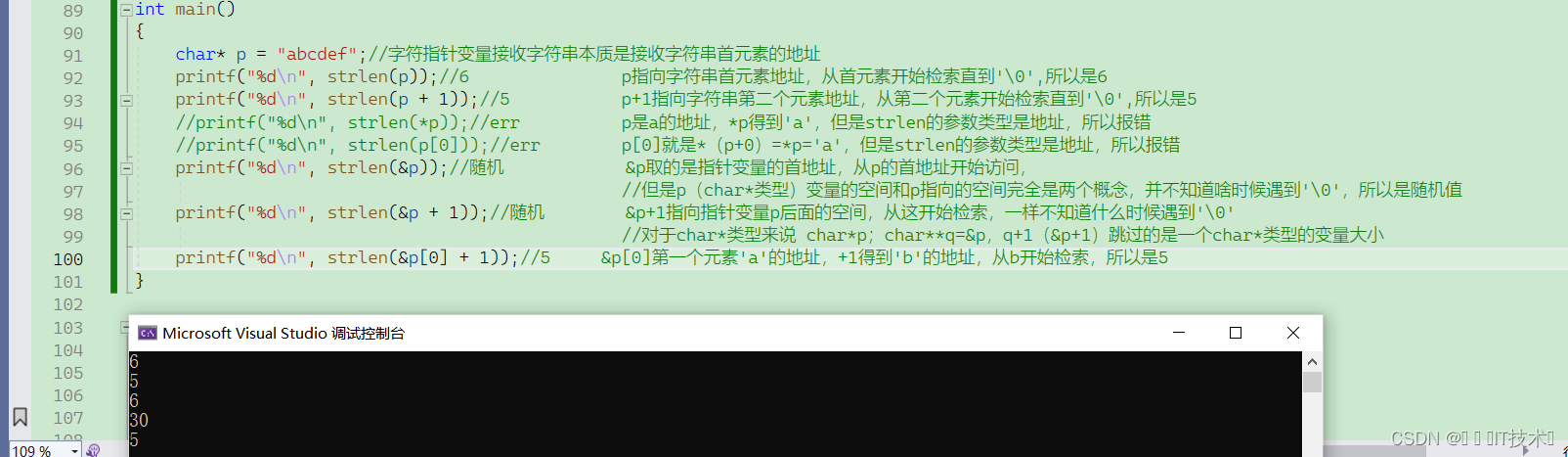 3.strlen的使用过程中一定要关注是否有\0,如果没有,就很可能出现越界访问,此时会得到一个随机值。