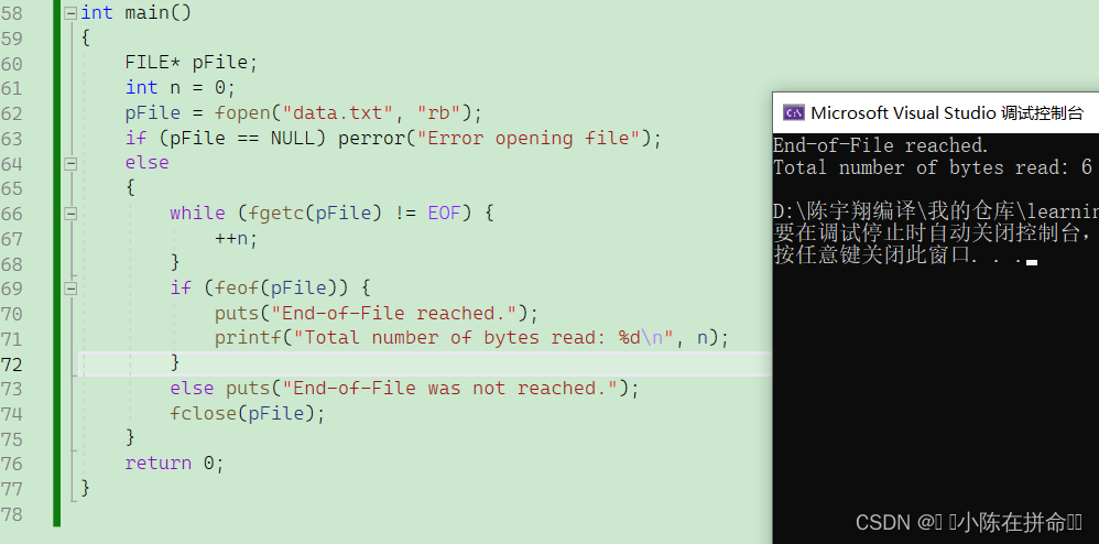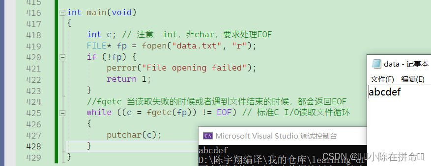 while ((ch = fgetc(pfread)) != EOF)//循环读取直到读取不到
