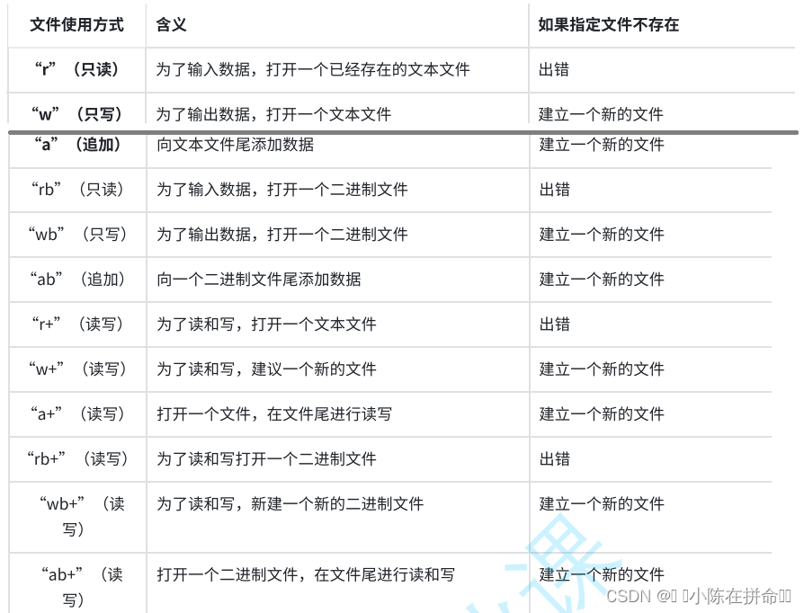 Close file:作用是关闭文件fopen函数中的参数mode表示文件的打开模式,下面都是文件的打开模式。