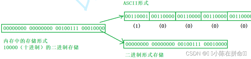 数据在内存中的存储形式:字符一律以ASCII码形式存储,数值型数据既可以用ASCII形式存储,也可以使用二进制形式存储。