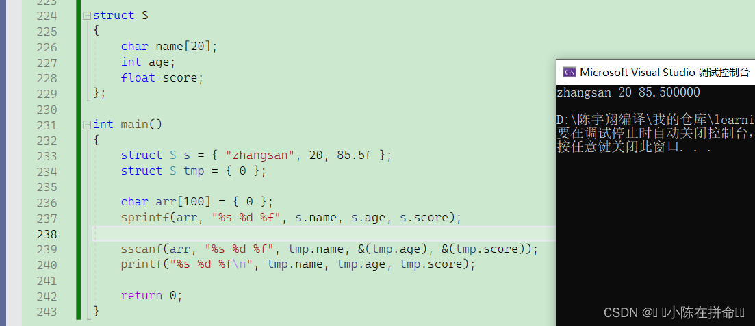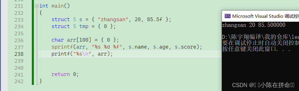 const char * s:用于输出的字符串 const char * format:格式化的字符串,用于输出指定的格式 ...:可变参数列表 Write formatted data from string:把一个格式化的数据转换成字符串