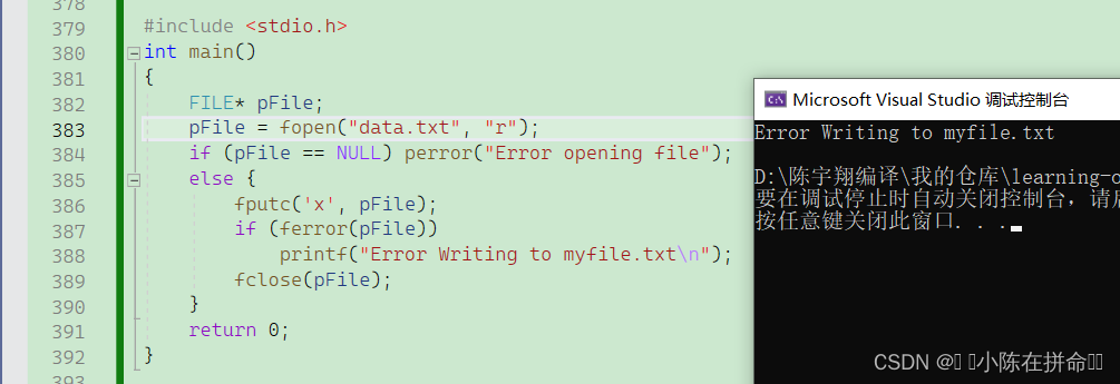 注:文件可能会打开失败,如果FILE*指针成功返回,说明打开成功,如果返回的是NULL,则打开失败!