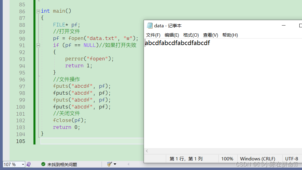 因为有缓冲区的存在,C语⾔在操作⽂件的时候,需要做刷新缓冲区或者在⽂件操作结束的时候关闭⽂件。 如果不做,可能导致读写⽂件的问题(数据丢失)。