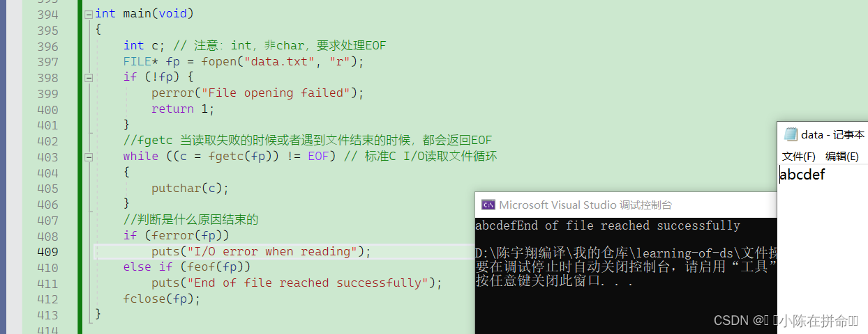 Check end-of-file indicator:作用是检查文件结束指示符(即在文件读取结束后,判断是否是因为遇到文件末尾而结束)