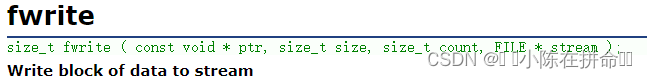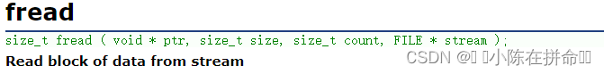 const void * ptr:传要写入的数据的指针 size_t size:传每个数据的大小 size_t count:传要写入数据项的数量 FILE * stream:传需要输入的流 Read block of data to stream:作用是将整块的数据输入到流中