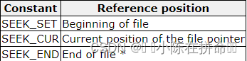 Reposition stream position indicator:作用是重新定位光标位置指示器(根据⽂件指针的位置和偏移量来定位⽂件指针)