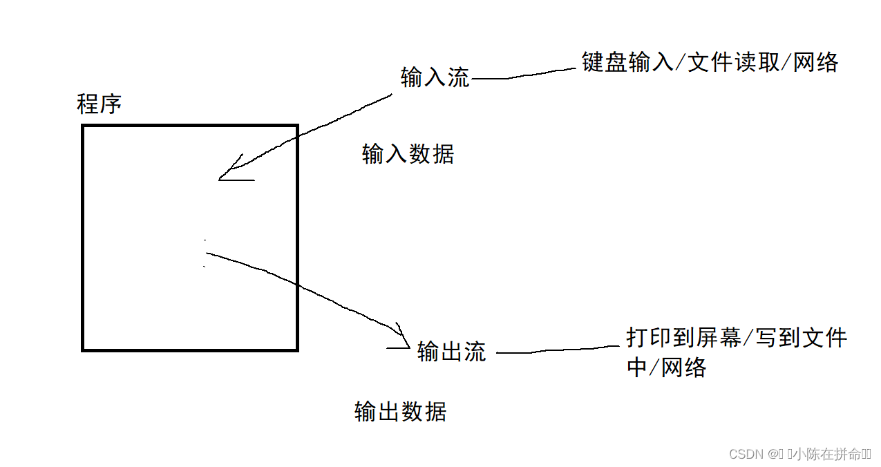 我们程序的数据需要输出到各种外部设备,也需要从外部设备获取数据,不同的外部设备的输⼊输出操作各不相同,为了方便程序员对各种设备进⾏⽅便的操作,我们抽象出了流的概念,我们可以把流想象成流淌着字符的河。