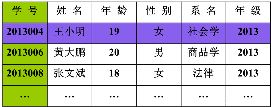定义:二维表【规范表】,一般表示示例: 学生(学号,姓名,性别...) 示例: