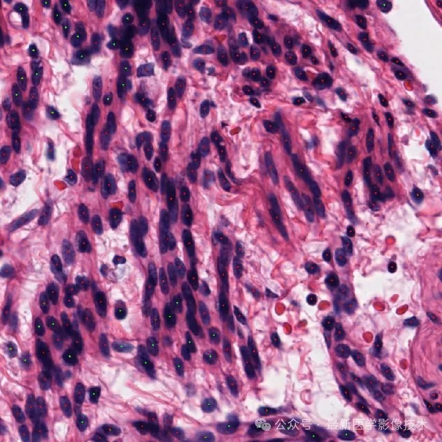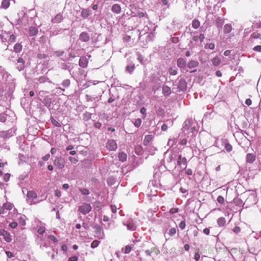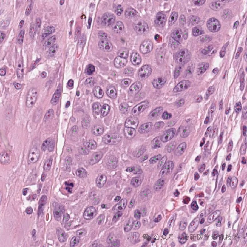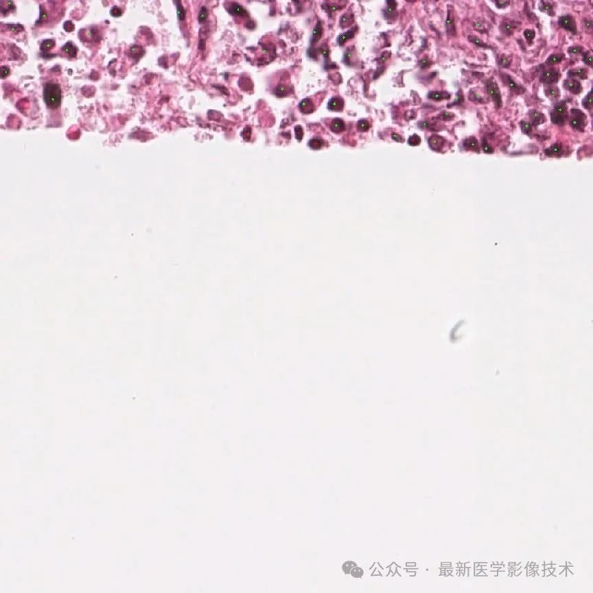 1、由于细胞的标注只有中心点坐标和标签值,所以设置边界框长宽为20个像素,再对组织病理图像缩放到1024x1024大小并进行0-1范围归一化处理。将数据划分成训练集和验证集。