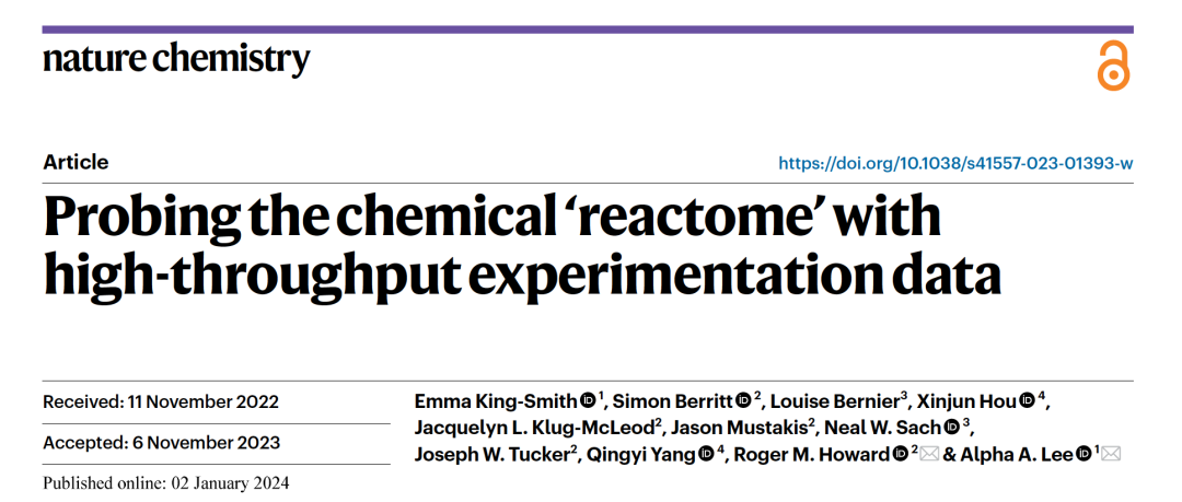 King-Smith, E., Berritt, S., Bernier, L. et al. Probing the chemical ‘reactome’ with high-throughput experimentation data. Nat. Chem. (2024).