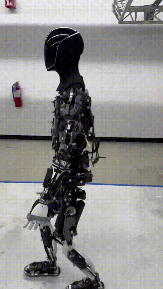具体来说,「擎天柱」的前庭系统、脚部轨迹,以及地面接触逻辑得到了改进。