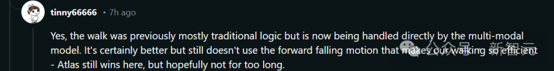 网友称,觉得现在擎天柱走起来更加流畅自然了,可能是因为基于了多模态模型的处理,而不是纯粹的逻辑控制。