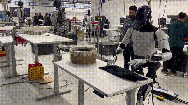 16日,特斯拉人形机器人「擎天柱」叠T恤手法操作也是行云流水。