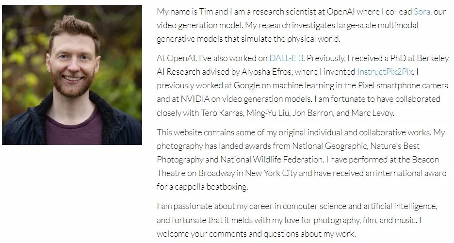 Tim Brooks个人网站:https://www.timothybrooks.com/about/