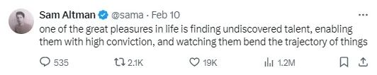 “生活中最大的乐趣之一就是发现未被发现的人才,赋予他们坚定的信念,并看着他们改变事物的轨迹。”