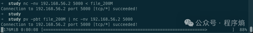 使用 nc 命令测试传输文件的截图: