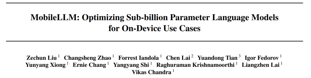 他所宣传的这项研究来自 Meta 最新论文《 MobileLLM: Optimizing Sub-billion Parameter Language Models for On-Device Use Cases 》,在众多作者中也有我们熟悉的来自 Meta FAIR 田渊栋。