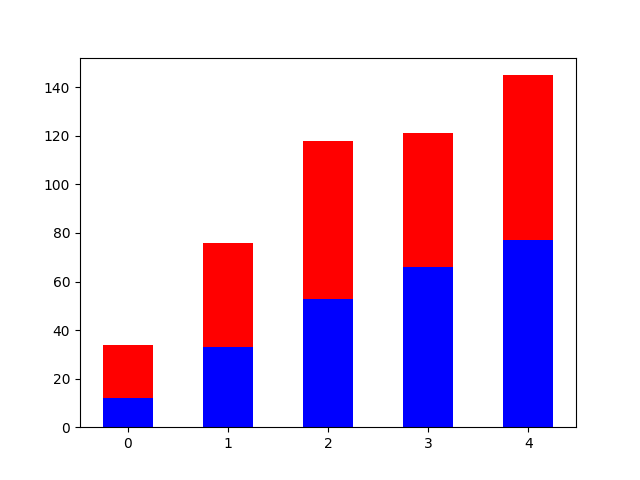 axes2.hist(x,bins=5,range=[0,100],histtype='barstacked',color='r')
