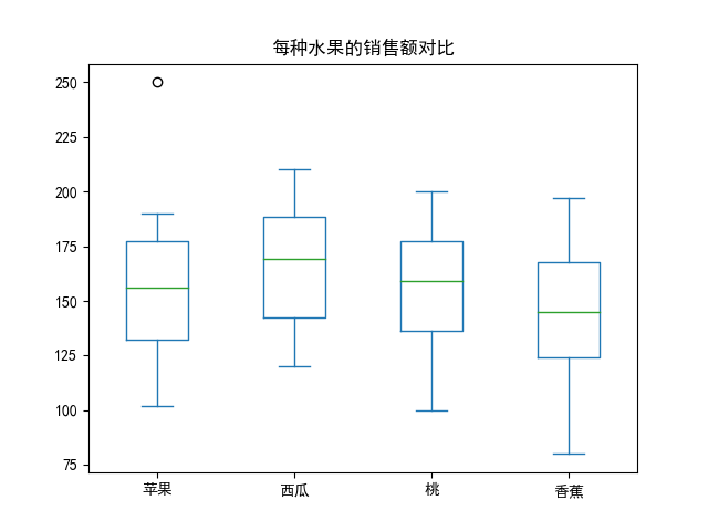 df.plot.box(title="每种水果的销售额对比")