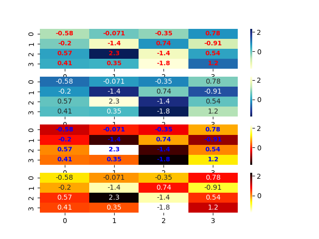 sns.heatmap(x, cmap="hot_r",annot=True, ax=ax[3])