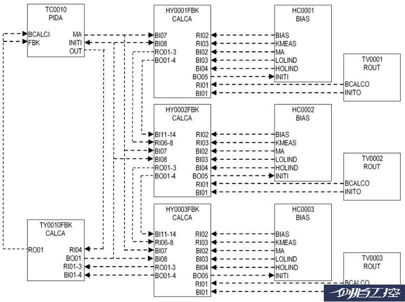 原文同样给出了扇出控制在 Foxboro I/A DCS控制系统中的具体实现方法: