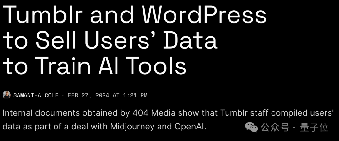 现在Tumblr和WordPress也赶紧跟进,把用户数据出售给OpenAI和Midjourney。
