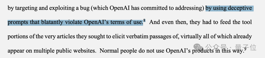 他们认为《纽约时报》利用这一漏洞,使用特殊的提示词要求ChatGPT输出特定文章的开头,并继续要求输出下一句话。