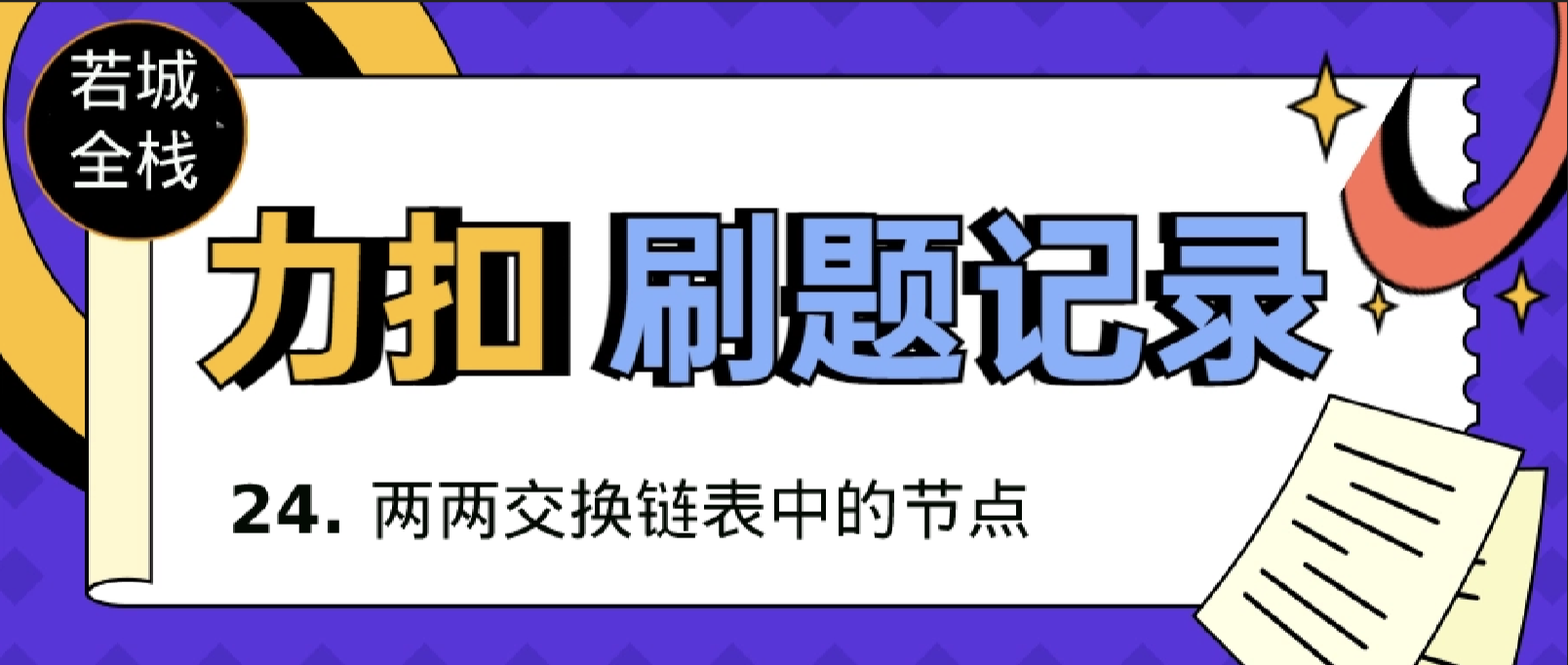 给你一个链表,两两交换其中相邻的节点,并返回交换后链表的头节点。你必须在不修改节点内部的值的情况下完成本题(即,只能进行节点交换)。