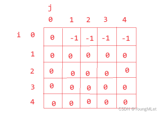 // 值为 -1 表示从 0~i 的物品中没有体积刚好为 j 的物品,所以也就没有价值