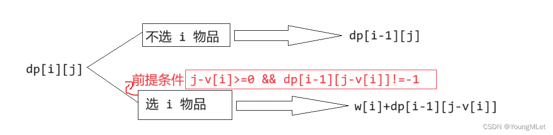 综上,状态转移方程为: dp[i][j] = max(dp[i - 1][j], dp[i - 1][j - v[i]] + w[i])