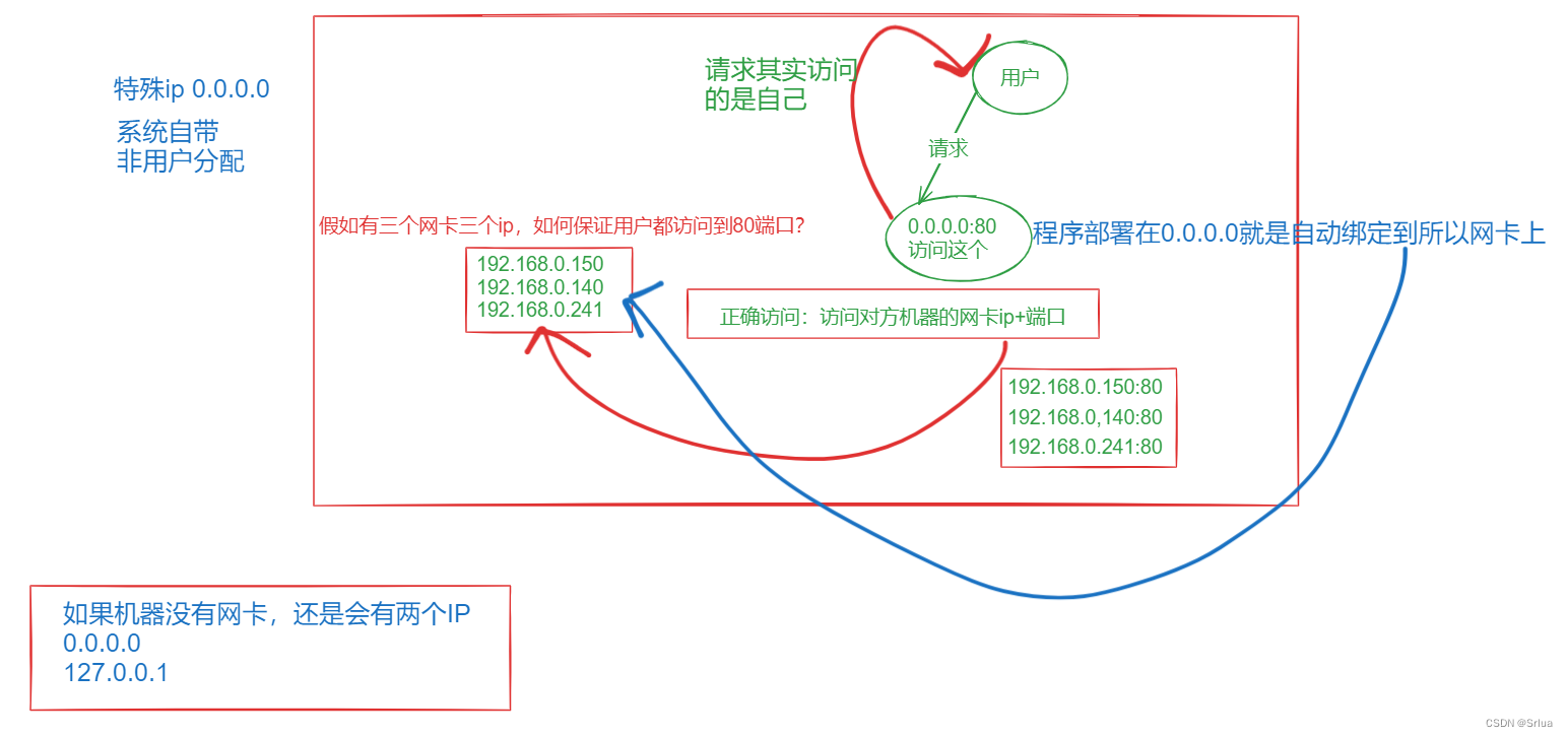 当你的机器,网站部署在0.0.0.0上它就表示,绑定了你机器所有的网卡,访问这台机器,所有的ip,都能定位到这个程序。