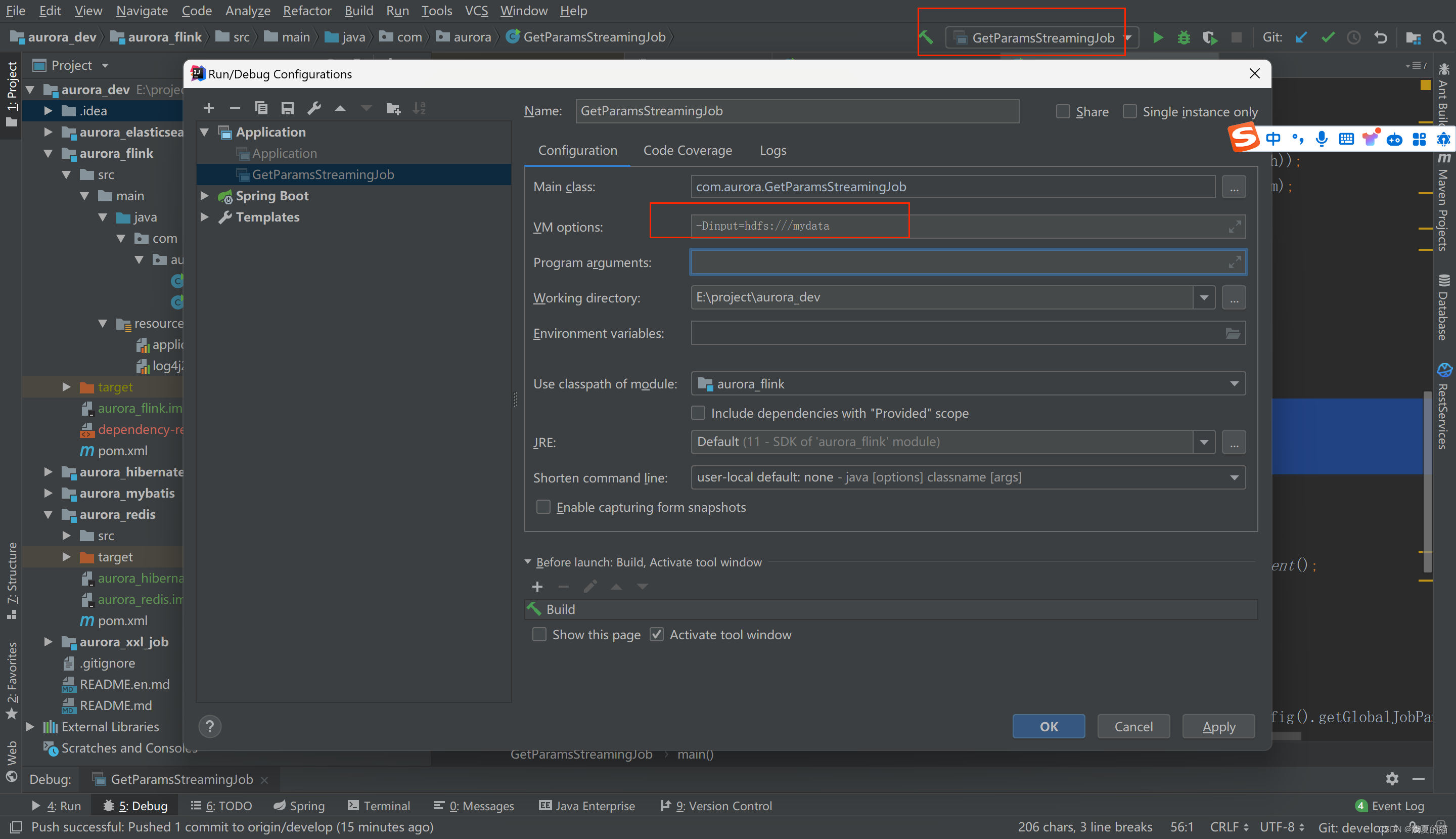tips:在idea的命令行传参,格式:–jobName program_job_aurora