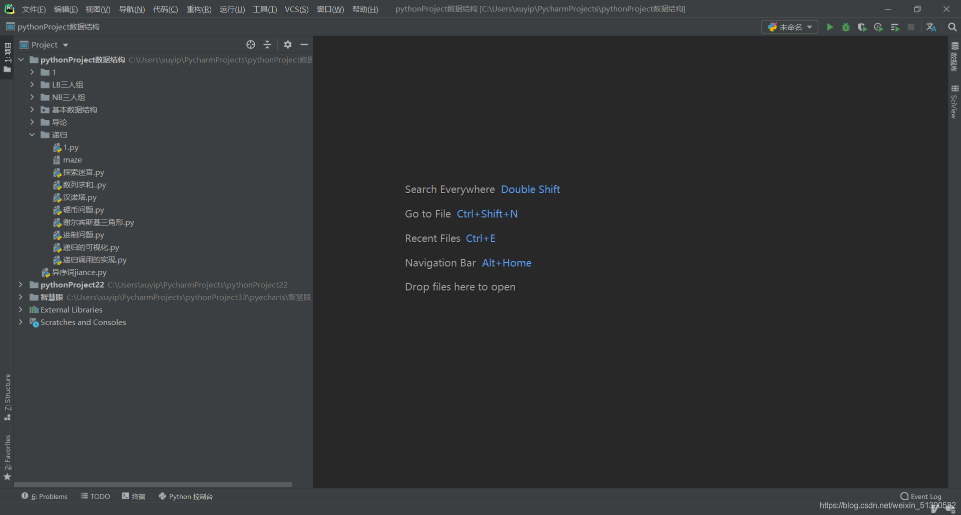 这就是我们的pycharm了,终于揭开了它神秘的面纱,到底是不是你的菜呢,还需要进一步深入了解一下,想相信你会爱上它的,哈哈哈