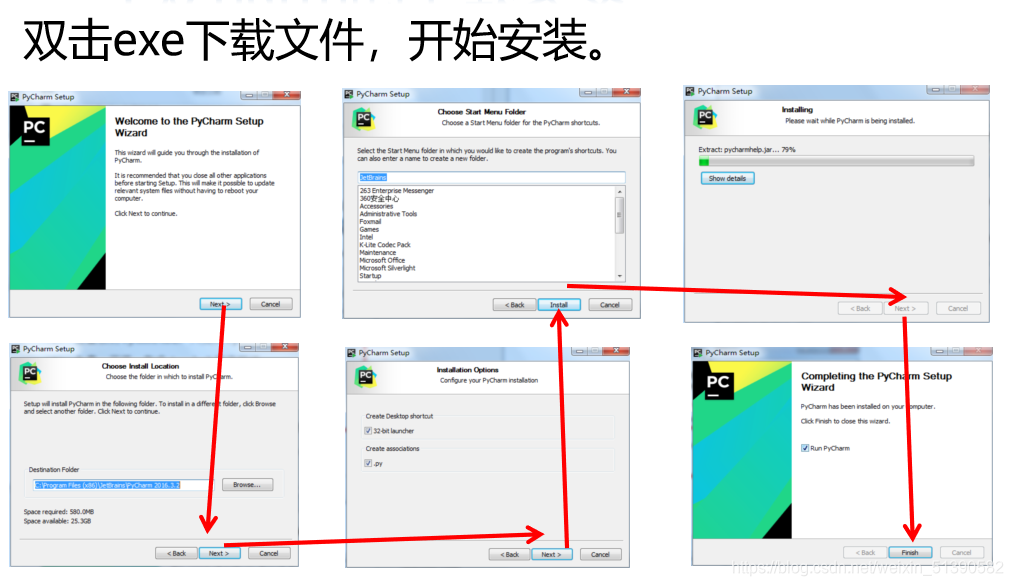 当我们的Pycharm文件下载完毕后,打开文件根据提示开始进行安装:
