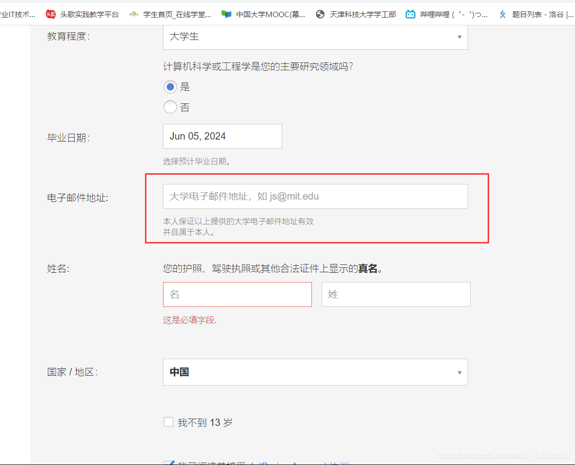点进去立即申请后会出现这个界面,需要我们填写个人信息,来确认我们的身份: