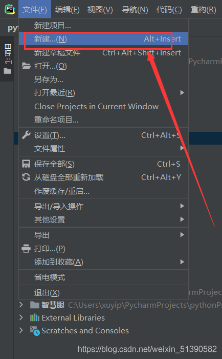 如何去新建一个python文件呢,首先找到左上角文件中的新建:
