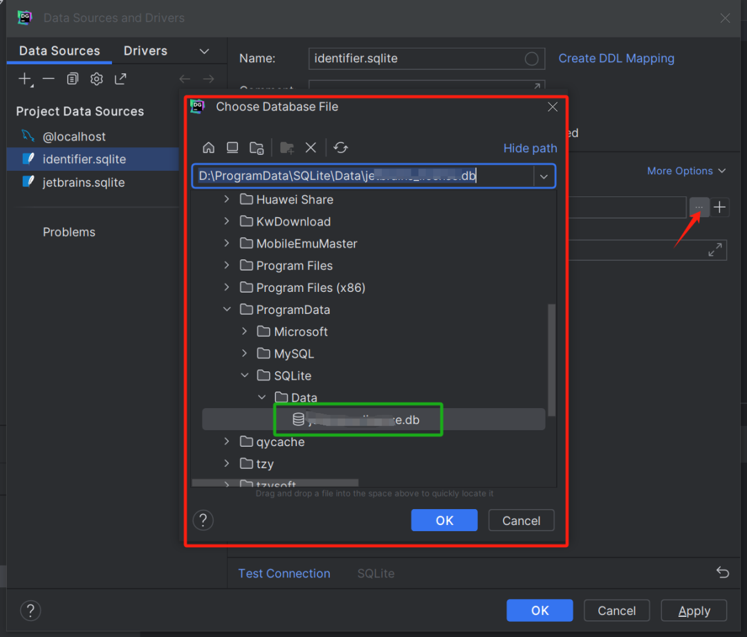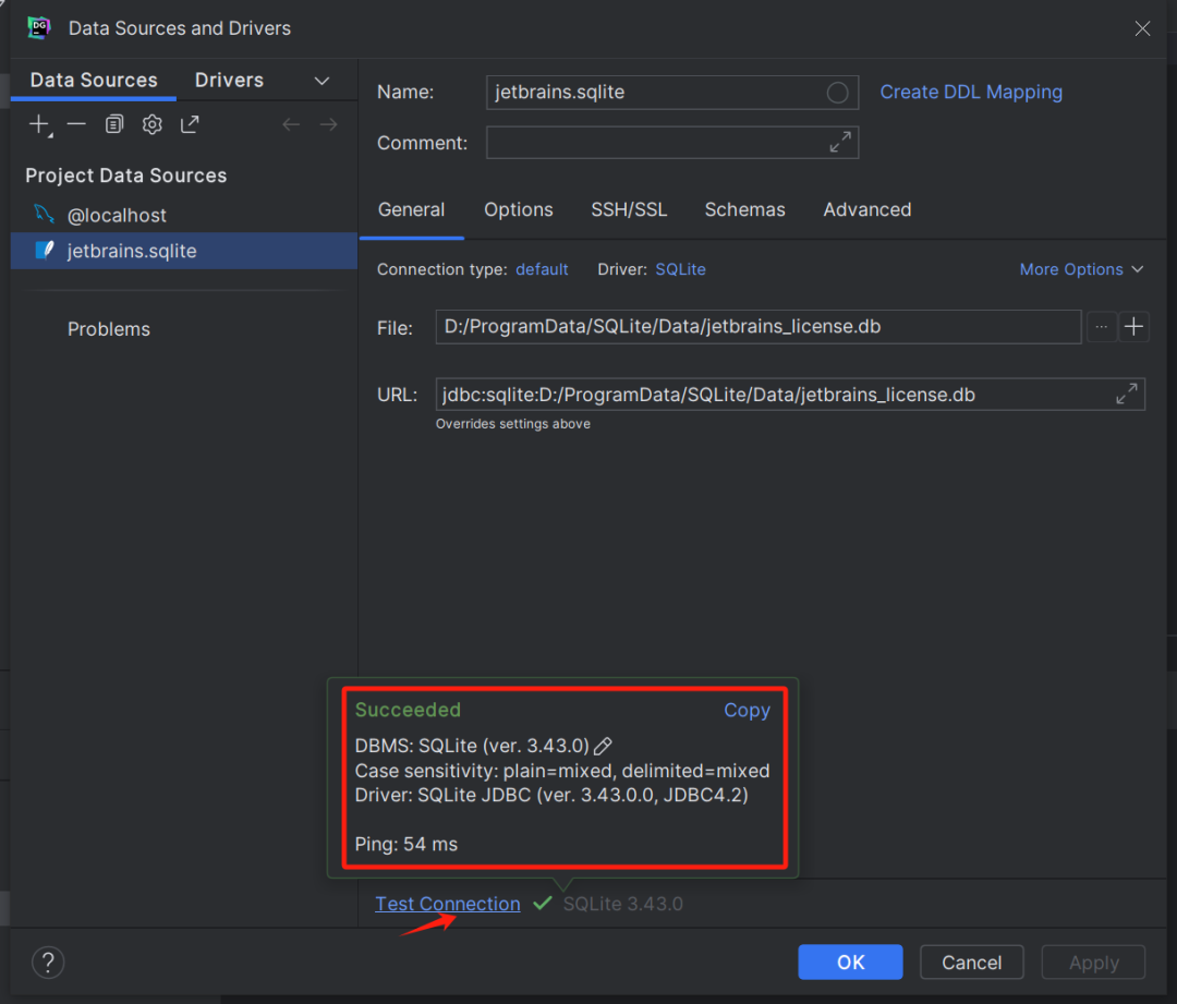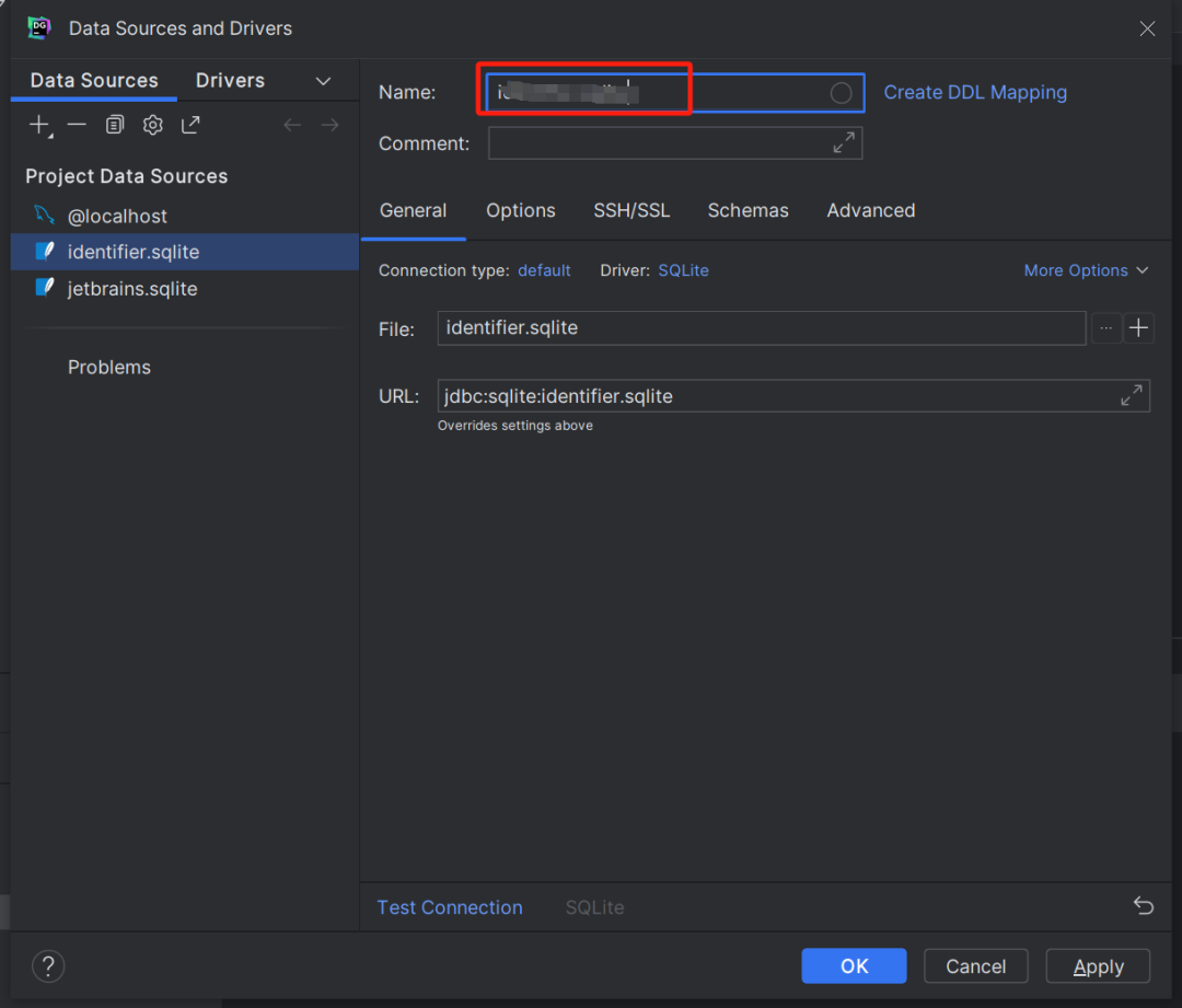 之后就可以在数据库可视化工具中连接SQLite,并进行数据库处理了。这里,我使用的是JetBrains旗下的DataGrip。