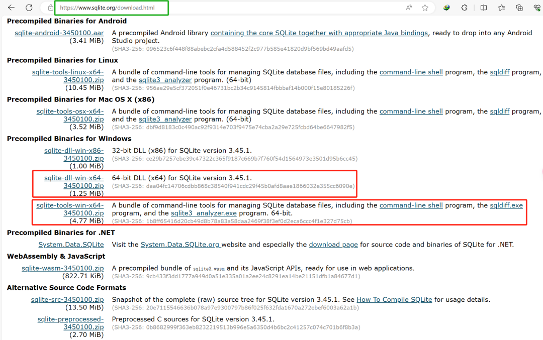 1、进入官网下载sqlite 和工具https://www.sqlite.org/download.html