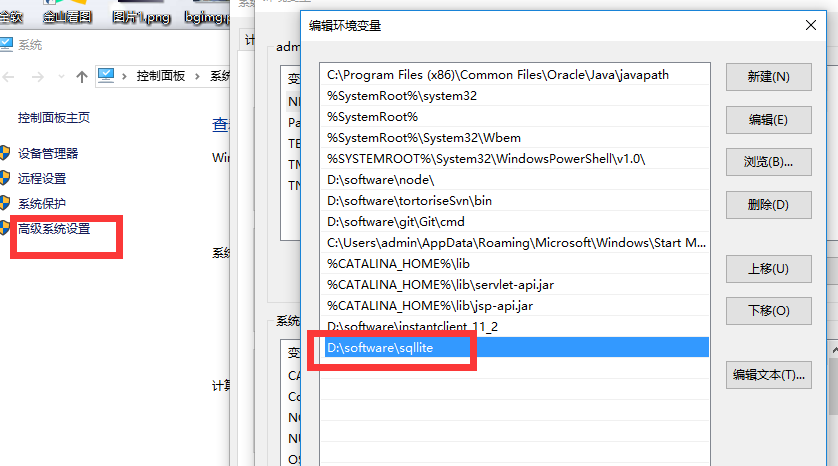 解决办法是:配置系统变量path,将sqlite的路径添加到系统变量path下
