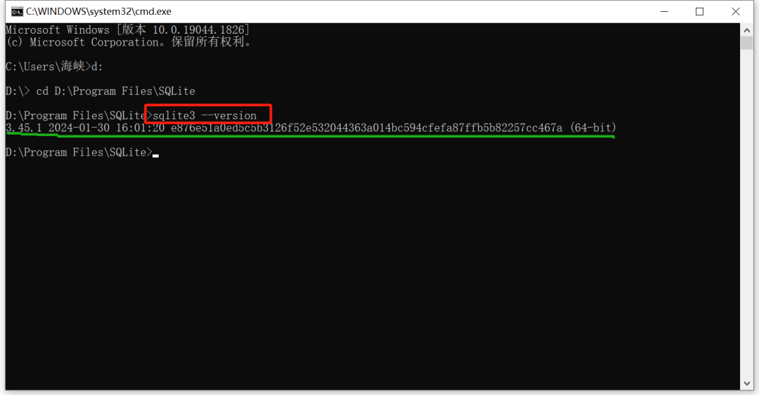 打开cmd菜单,来到刚才解压SQLite的目录,运行sqlite3 --version。