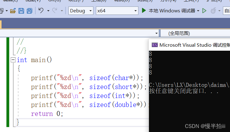 结论:指针的类型决定了,对指针解引用的时候有多大的权限(一次能操作几个字节)。 意思就是 char* 的指针解引⽤就只能访问⼀个字节,而int* 的指针的解引⽤就能访问四个字节,同理short* 访问2个字节 double* 就会访问8个字节。