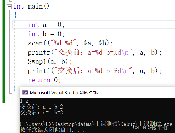 Swap1(a, b);//传值调用