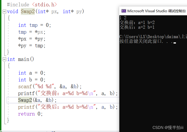 Swap2(&a, &b);//传址调用