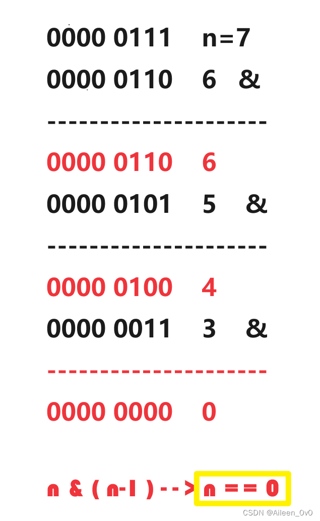 tip:将n的二进制与上(n-1)的二进制,直到n=0为止