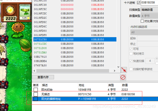 思路:通过种植物来改变阳光的数值,ce中使用精确数值搜索即可,如下图