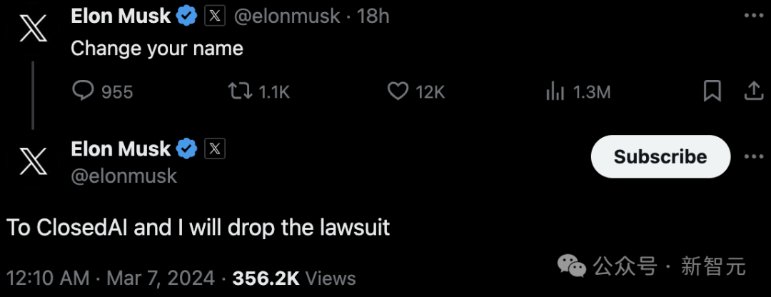 他表示,「若OpenAI将名字更换到Closed AI,我就放弃起诉」。