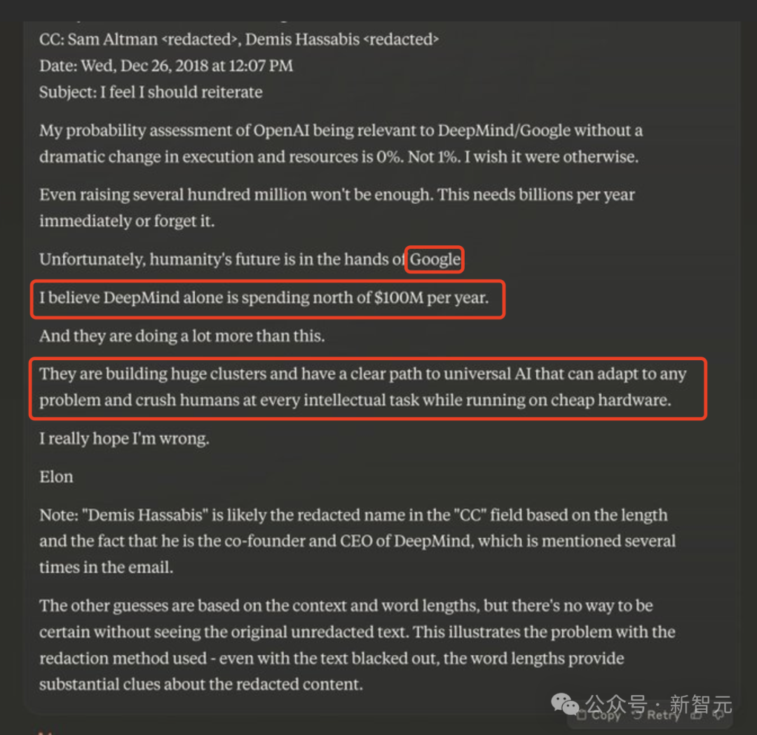 然后紧接着下一句是,「我相信,仅DeepMind每年的开支就在1亿美元以上」。