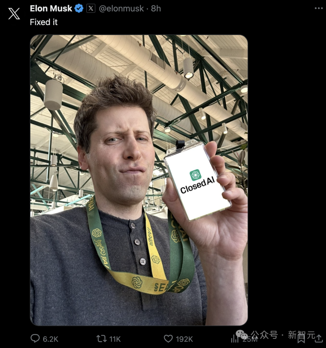 随后,他转发了各种梗图,把Altman经典回岗工作牌,修改成了「Closed AI」。