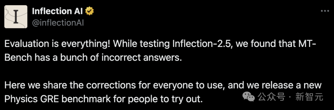 在评估模型能力时,Inflection发现基准MT-Bench有太多不正确答案,并公开了一个全新的Physics GRE基准供所有人试用。